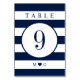 Carte de numéro de table à thème rayures nautiques pour votre prochain événement de mariage.