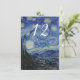 Carte de numéro de table de réception de mariage colorée, avec la peinture d'art fin de La Nuit étoilée de Vincent van Gogh. Personnalisez le numéro blanc pour chaque table à votre réception. Des produits de mariage assortis sont disponibles.