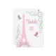 Une simple silhouette Tour Eiffel orne cette carte postale de numéro de table, ajoutant une touche française à votre soirée. Cette carte postale fait partie d'une collection mariage complète; cependant, si d'autres pièces sont nécessaires, il suffit de nous le faire savoir à prettyfancyinvites@gmail.com.