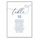 Dîner mariage Carte Carte Tableau De Table Des Invités, Script Moderne Et Élégant. Customisez le texte et / ou retirez et remplissez avec votre mariage sur le thème (bleu marine).