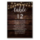 Dîner mariage Table d'hôtes Carte de tableau, Script rustique moderne, lumières à cordes, arrière - plan en bois foncé Customiser le texte et / ou retirer et remplir avec votre mariage thème.