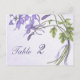 Cette belle carte de Table Number avec numéro personnalisable présente un délicat design floral de Columbine violet et blanc qui donne une douce sensation romantique.