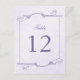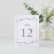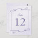 Cette belle carte Table Number avec la boîte à défilement violet et le numéro personnalisable a l'arrière - plan lavande correspondant à utiliser avec le jeu Columbine Bouquet Mariage.