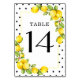 La carte numéro de tableau affiche à l'avant et à l'arrière (double face) des branches de citron aquarelle et des pois. Les articles sont imprimés exactement comme ils apparaissent sur votre écran lorsque vous ajoutez au panier, donc personnalisez et ajoutez chaque numéro de table dont vous avez besoin à votre panier individuellement.