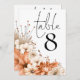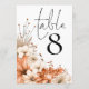Numéro de table du feuillage floral d'automne. Une belle bordure automnale le long du bas et à gauche dans les tons de terre cuite, marron et crèmes est au-dessus du numéro de table que vous pouvez facilement personnaliser. Le même design est de l'autre côté.