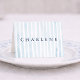 Featuring soft hand-painted watercolor stripes along the lower half and clean modern serif typography, this folded place card blends timeless estate charm with a fresh coastal aesthetic.