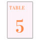 Numéro De Table Écrasage d'abricot rose orange Tableau 7 Mariage