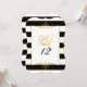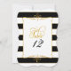 Si vous cherchez une solution élégante et peu coûteuse pour les numéros de table de votre réception de mariage, douche de mariée ou autre événement formel, ces cartes constituent un excellent design. Vous pouvez personnaliser autant de tables que vous le souhaitez - il suffit de cliquer sur la zone de modèle, de taper votre numéro de table (ou nom de la table) et de le placer dans votre panier. Répétez autant de fois que nécessaire. Un fond rayé large moderne noir et blanc avec une fine bordure dorée ajoutée est associé à un élément de cadre de division à flourish de défilement dessiné à la main et à un mot de typographie de calligraphie "Table" avec des volutes élégantes en faux doré pailleté.