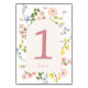 Un beau panneau de numéro de table avec des fleurs pastel pastel et des papillons délicats entourant une élégante disposition de texte voûté. Parfait pour créer une atmosphère chaleureuse et charmante pour la célébration spéciale.