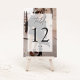 Les élégantes cartes de numéro de table de mariage moderne disposent d'une photo verticale à fond saigné avec votre numéro de table superposé sur un élément rectangulaire blanc pur avec des accents de script de calligraphie chic. Personnalisez avec vos initiales et la date mariage en bas.