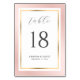 Elégante carte de numéro de table rose et or mariage avec du texte dans une police de script moderne. Éléments correspondants disponibles.