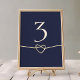 Élever votre décor mariage avec ce numéro de table bleu marine simple mais classique et élégant. Doté d'un design minimaliste et d'un coeur de cordes d'or romantique chic, il allie harmonieusement sophistication moderne et charme intemporel. Parfait pour guider vos invités dans le style !