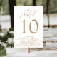 Cartes de numéro de table de grange rustique avec une illustration esquissée d'une grange d'or et d'une forêt au fond du dessin avec un arrière - plan blanc. "Tableau" est affiché en calligraphie or élégante avec le numéro de tableau ci-dessous. Le design se répète à l'envers. Pour commander les cartes de table, il suffit d'ajouter chaque numéro à votre panier individuellement et de retirer une fois que vous avez terminé. Conçu pour coordonner avec notre collection Elegant Rustic Barn mariage.