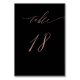 Ces cartes de table minimalistes en or rose et en mariage noir ajouteront une touche d'élégance à votre décor mariage. Ce modèle de design simple présente un script d'or faux rose moderne qui dit "Tableau 18". Veuillez consulter notre boutique I Love Weddingz pour plus de cartes de numéro de table dans cet ensemble. Meilleurs voeux pour votre mariage et mariage ! Conçu par Susan Coffey.