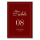 Numéro De Table Elegant Script Wine Red Wedding Custom Names