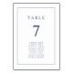 Élégant Numéro de table de Mariage simple. Ce numéro de table de mariage de bordure élégant et minimaliste comporte une fine bordure bleu marine avec du texte et un script bleu marine. Les articles correspondants sont dans la suite Mariage de la frontière classique de la Marine.