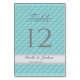 Numéro De Table Elégante surface composée turquoise argent mariage