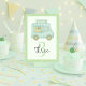 Ajoutez une touche ludique et coordonnée à la célébration de l’anniversaire de votre enfant avec cette adorable carte de numéro de camion à crème glacée. Conçue dans des teintes douces vert pastel et menthe avec un camion à crème glacée aquarelle et des arrosées colorées, cette carte de table verticale apporte un charme sucré à votre configuration de soirée thématique. Parfait pour les fêtes de crème glacée, les anniversaires d'été ou les soirées dessert pastel.