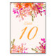 Belle carte de numéro de table florale. Décorée d'un bouquet floral élégant à l'aquarelle et d'un script à l'aspect vintage. Vous pouvez personnaliser chaque carte avec le numéro de table. Parfait pour les anniversaires, les mariages, les enterrements de vie de jeune fille, les baby showers, les anniversaires de mariage et autres célébrations.