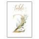 Belle carte de numéro de table avec un motif botanique - une illustration aquarelle de feuilles vertes et dorées. Table 2. Veuillez vérifier tous les numéros disponibles