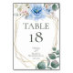 NUMÉRO DE TABLE | Fleurs de paeonie aquarelle bleu