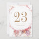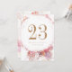 Numéro de table de mariage floral rose de printemps romantique pour une merveilleuse réception de mariage sur le thème bohème. Fleurs de style vintage. Mariage bohème élégant. Couleurs roses et dorées.