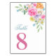 Numéro De Table Fleurs roses et bleues Table 8 Mariage d'été
