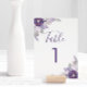 Numéro de table floral aquarelle violet et argent