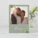 Ces numéros de table de mariage floral de verdure botanique élégants peuvent être personnalisés avec votre photo et vos numéros de table en typographie chic sur un fond de sauge vert. Les cartes sont imprimées au recto et au verso (recto-verso). Conçu par Thisisnotme©