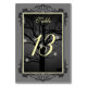 Un arbre à bougies sans feuilles sous une pleine lune montre vos numéros de table dans une couleur jaune pâle de flamme de bougie. Un cadre noir gothique fleuri sur un arrière - plan gris foncé déclenche les panneaux de numéro de table de réception de votre mariage. Chaque carte a un modèle pour le numéro de table. Offrez-vous la beauté du noir et l'élégance d'antan avec ces numéros de table abordables dans le cadre de vos somptueuses tables de réception de mariage.