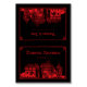 This gothic wedding place card features a haunting vintage illustration of a castle, which you can replace with an image of the destination where you'll be married (transparent background preferred). A calligraphic blackletter font displays the guest's name and number for the table. On the back, add the wedded couple's name and date of the event. A hand-drawn border encloses the design. The color scheme is blood-red on black. Fold the card in half yourself. ••• For more wedding suites, visit my store Zazzle.com/EventsByJessicaAmber ••• For custom orders, message me on Zazzle