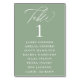 Elégante calligraphie blanche "table", avec les noms d'invités et le numéro de table, le mariage numéro de table carte de sièges. La couleur Arrière - plan affichée en vert sauge peut être customisée.