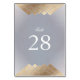 Un design élégant et formel pour vos numéros de table mariage pour un mariage d'inspiration boho. Revivez la tendance de Great Gatsby avec ce design - Comme ce numéro de table tendance donnera à votre mariage le look idéal pour votre journée spéciale. Antique Faux Gold ci-dessous et au-dessus d'un numéro de table. Ce numéro de tableau pour compléter les Suites Mariages ou faire partie d'une fonction mariage séparée. Suggérez de customiser les numéros de table un par un et d'ajouter au panier individuellement. Design Extraordinaire avec lignes art déco dans le style Great Gatsby. Très tendance, moderne et pointu. Fond d'or à l'arrière et à l'avant du numéro de table donnant des détails complexes au numéro de table. Mariages fantaisistes et formels. Avant-Garde.