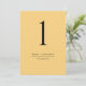 Aidez vos invités à trouver leur table avec ce élégant numéro de table moderne jaune. Carte double face. Libérez de l'espace tout autour en vous donnant la liberté d'afficher avec le support de table ou le cadre. Arrière - plan jaune attrayant et texte noir. Plusieurs options de couleur. Cartes et menus assortis disponibles. Ayez tous les numéros de table dans la même couleur ou mélangez les couleurs selon le thème de couleur de votre événement. Une partie de notre collection "Elegant Yellow Event Signs and Products" avec une variété de produits de coordination disponibles.