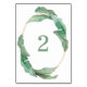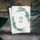 Numéro De Table Mariage avec verdure tropicale. Botanique à l'aqua