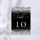 Un arrière - plan noir décoré de faux éclats d'argent. Texte blanc. Personnalisez et ajoutez vos numéros de table. Ajoutez vos numéros un par un.
