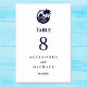 Célébrez votre journée spéciale avec cette carte mariage côtière élégante et personnalisée, avec un design graphique chic d'un palmier bleu marine, le soleil se levant au-dessus de l'océan, et des oiseaux paisibles, le tout entouré d'un cercle marine dressé contre un arrière - plan blanc et élégant. Idéal pour un mariage de palmiers ou un mariage sur la plage, cette carte capture la beauté sereine de la mer et les vibrations tropicales d'été. La combinaison d'élégante typographie et de gracieuses polices de script de calligraphie ajoute une touche élégante à l'affichage de votre numéro de table, ce qui en fait un parfait ajustement pour toute célébration maritime sophistiquée.