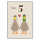Cute Cartoon Mallard Canards Tenant Les Mains. Une carte de numéro de table de réception pour le couple heureux. Chaque carte doit être numérotée et ajoutée au panier séparément. Visitez Jenn's Doodle World pour découvrir des cartes de table et des produits de planification mariages à thème pour canards encore plus originaux.
