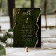 Cette élégante carte de numéro de table mariage moderne dispose d'un arrière - plan d'aquarelle vert olivier orné d'une parties scintillant en faux or. Le mot "table" apparaît dans un script d'écriture manuscrite de couleur or. Ajoutez les noms de vos invités qui sont affectés à chaque table.