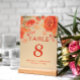 Mariage de automne Floral Orange Brûlé Numéro de table. Éléments correspondants disponibles.