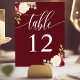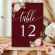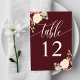 Numéro De Table Mariage de calligraphie florale de Merlot rouge pr