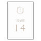 Monographie de la crête botanique, numéro de table mariage. crête d'inspiration vintage ornée de branches botaniques. Caractéristiques, élégante typographie beige style design mélange de script et de type gras. Veuillez noter que les cartes de numéro de table doivent être commandées individuellement.