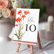 Numéro De Table Mariage de script Boho Red Fleur sauvage