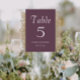 Guidez vos invités de mariage à leur table avec cette carte de numéro de table de style simple qui comporte des lettres blanches et stylisées sur un arrière - plan de couleur aubergine tendance. Le design est de chaque côté de la carte. Modifiez votre carte pour modifier le numéro de table, le nom du couple de mariages et la date. Commandez les cartes séparément pour chaque numéro de table.