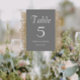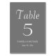 Guidez vos invités de mariage à leur table avec cette carte de numéro de table de style simple qui comporte des lettres blanches stylisées sur un arrière - plan de couleur gris foncé et tendance. Le design est de chaque côté de la carte. Modifiez votre carte pour modifier le numéro de table, le nom du couple de mariages et la date. Commandez les cartes séparément pour chaque numéro de table.