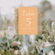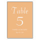 Guidez vos invités de réception de mariage à leur table avec cette carte de numéro de table de style simple qui comporte des lettres blanches stylisées sur un arrière - plan de couleur pêche tendance. Le design est de chaque côté de la carte. Modifiez votre carte pour modifier le numéro de table, le nom du couple de mariages et la date. Commandez les cartes séparément pour chaque numéro de table.