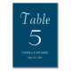 Guidez vos invités de mariage à leur table avec cette carte de numéro de table de style simple qui comporte des lettres blanches et stylisées sur un arrière - plan bleu turquoise et tendance. Le design est de chaque côté de la carte. Modifiez votre carte pour modifier le numéro de table, le nom du couple de mariages et la date. Commandez les cartes séparément pour chaque numéro de table.