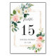 Elégante carte de numéro de table de mariage avec des fleurs d'aquarelle peintes en rose vif, blanc et vert feuillage avec cadre doré. Pour une personnalisation plus avancée de cette conception, veuillez cliquer sur le bouton "Personnaliser". Des articles correspondants sont également disponibles.