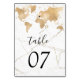 Numéro De Table Mariage Destination World Map Gold Removable Heart