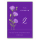 Numéro de carte de table avec élégant bouquet de fleurs d'eustomas violets et feuilles vert clair, couleur pastel printemps ou été douceur eustomas fleuris romantique fleurs roses. Peinture à l'aquarelle numérique botanique. Botany en fleurs florales Numéro de carte de table. Collection d'Eustomas Violets.